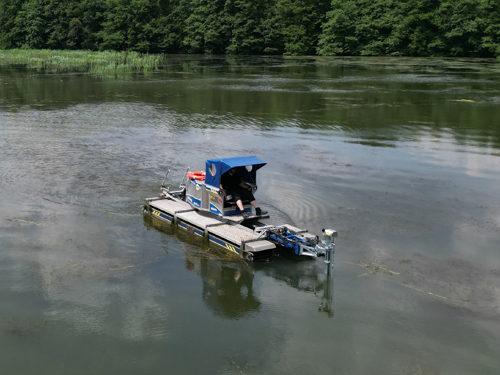 Mit unseren Schneid- und Sammelanbauten für unser Amphibienfahrzeug Truxor können wir Gewässer wirkungsvoll entkrauten, z.B. den Bewuchs mit Kanadischer Wasserpest reduzieren.